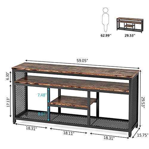 Tribesigns TV Stand for TV up to 60 inches, 4 -Tier TV Console Media Stand with Storage Shelves, Industrial Style Entertainment Center Console Table for Living Room Entryway, Rustic Brown