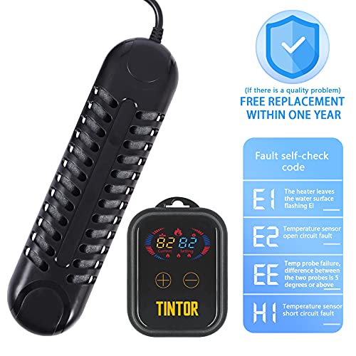 • TINTOR Submersible Aquarium Heater, 800W/1200W Fish Tank Heater, Double Tube Heating, Rapid Heating and Energy Saving, LED Digital Temperature Controller, Suitable for sea Water and Fresh Water(800)
