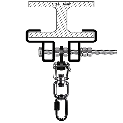 SELEWARE Heavy Duty Steel Beam Clamp, Heavy Bag Mount, Punching Bag Hanger Heavy Duty Holder for Boxing, Muay Thai and MMA Training, 360° Swivel Hardware, W/Carabiner, C. BeamHanger with SwivelAnchor