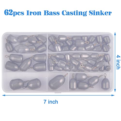 AGOOL Fishing Weight Sinker - 27/62pcs Bass Casting Sinker Weight Bell Sinker Iron Fishing Weight Sinker with Ring Water Drop Sinker Weight for Saltwater Freshwater Fishing, 62pcs / 7sizes