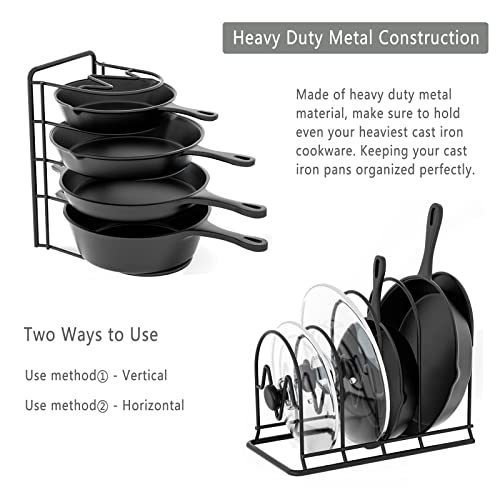 REEQMONT Heavy Duty Pot Rack Organizer, 5 Tier Pan Rack Storage Holder, Holds 50 LB - Holds Cast Iron Skillets, Frying Pans, Griddles - No Assembly Required, 13'' Height (2 pack), Black, 13" H (2 pack)