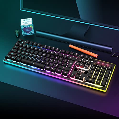 • RedThunder K10 Wireless Gaming Keyboard, Rechargeable 3000mAh 2.4G LED Backlit Wireless Keyboard, Ergonomic Keyboard with Mechanical Feeling Keys for PC PS4 Xbox One Mac, Teclado Gamer, Black
