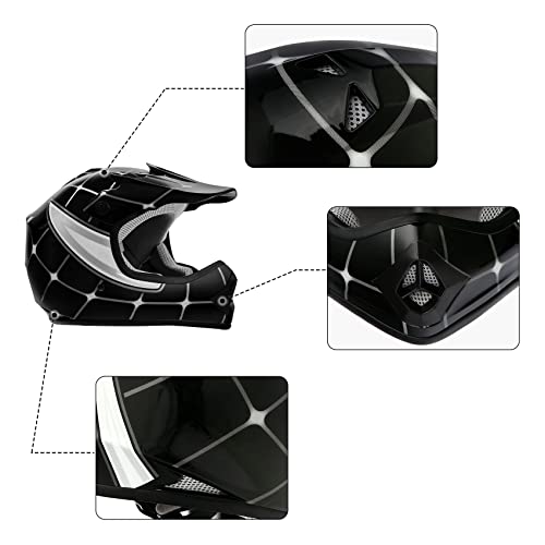 TCMT Dot Youth Kids Motocross Offroad Street Black Spider Motorcycle Youth Helmet Dirt Bike Motocross ATV Helmet+Goggles+Gloves L, Pattern:Black Spider, Youth Large