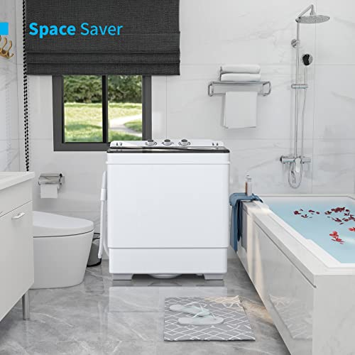 • ROVSUN 26LBS Portable Washing Machine, Mini Twin Tub Washer with Washer(18lbs) & Spiner(8lbs) & Built-in Pump Draining for RV Camping Dorm College Apartment