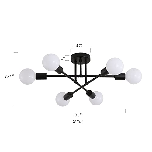 • MEIXISUE Black Modern Sputnik Chandelier Ceiling Light Fixtures,6-Lights Industrial Metal Semi Flush Mount Ceiling Light for Bedroom Dining Room Living Room Kitchen Hallway UL Listed