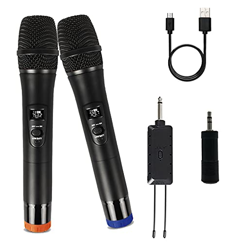 • ALPOWL Wireless Microphone, UHF Dual Cordless Dynamic Mic System,Handheld Karaoke Microphone with Rechargeable Receiver(Auto Connect,200 ft Range) for Singing, Church, Speech, Wedding, Party