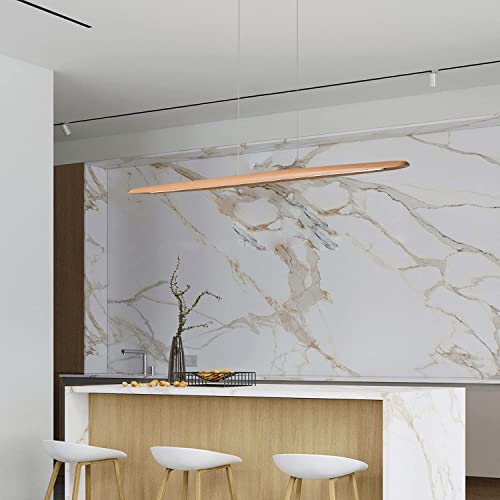 • YISDESIGN 51" Wood Linear Pendant LED Linear Chandelier Island Lights Dimmable for Dining Room Living Room Pool Table Lighting Natural-European Beech Wood