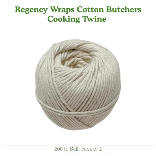 • Regency Wraps Butchers Cooking Twine Ball, Made of Heavy-Weight Natural Cotton for Turkey Trussing and Meat Prep for Roasting, 200 ft Ball, Pack of 2