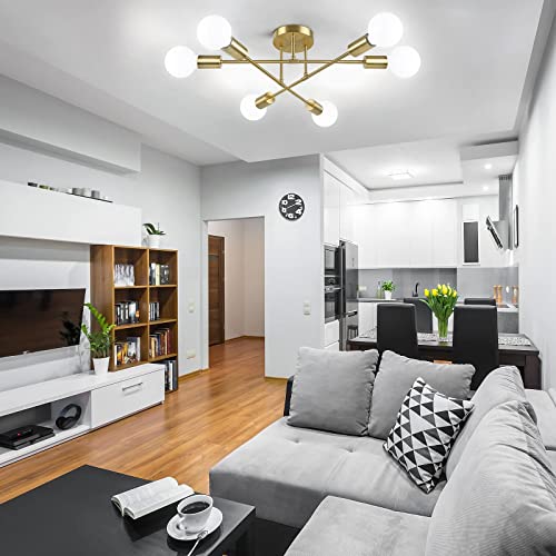 • Modern Sputnik Chandelier 6-Light Industrial Ceiling Lights Fixture 22" Gold Semi Flush Mount Ceiling Light with E26 Base Sputnik Lights Fixture for Dining Room Bedroom Foyer Hallway Living Room
