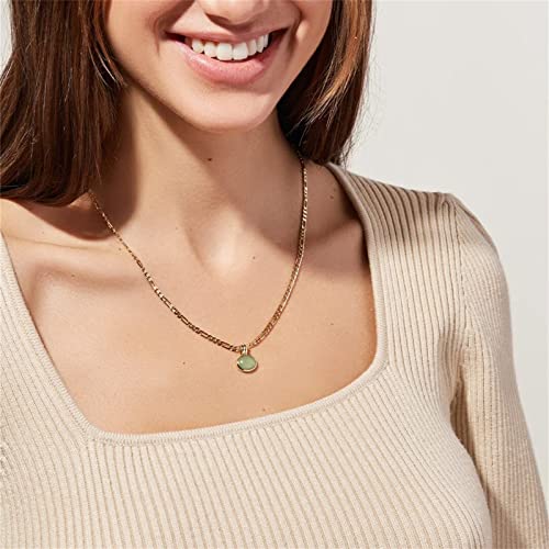 Moonffay Women's Green Created Opal Necklace, Charm 18k Gold Plated Stainless Steel Snake Chain Jewelry Bling Drop Pendant Choker Necklaces for Girls,18 Inch, Aventurine-Green