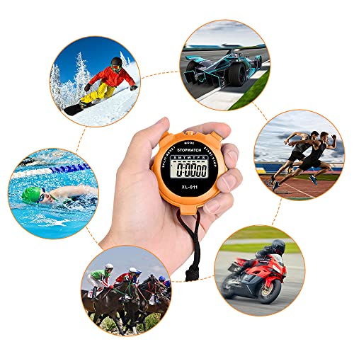 • Vicloon Digital Simple Stopwatch - Large Display, Single Lap Split, 12/24 Hour Clock Alarm Date for Coaches, Kids' Training, Swimming, Running (Orange)