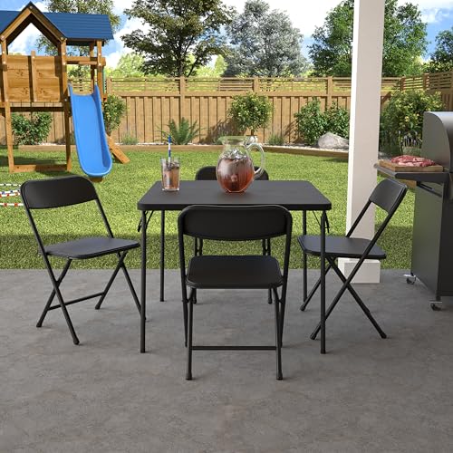 CoscoProducts Indoor/Outdoor Solid Resin Folding Table & Chair Dining Set, Perfect for Everyday Use, Hosting, Game Night, or Holiday Celebrations, 5-Piece, Black