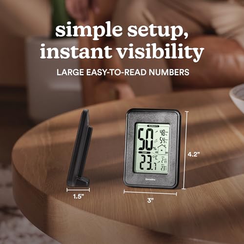 • Homedics HM100 Indoor Humidity Monitor, Easy-Read Hygrometer to Monitor Indoor Air Comfort, Fahrenheit and Celsius, Battery-Operated Room Thermometer for Home