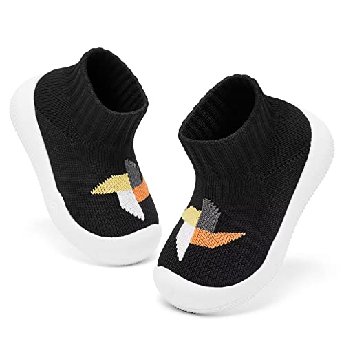 • Baby Shoes Girls Boys Breathable Baby Sock Shoes with Non Slip Soft Rubber Sole Infant First Walking Sneaker Toddler Slipper Lightweight 12-15 Months Black
