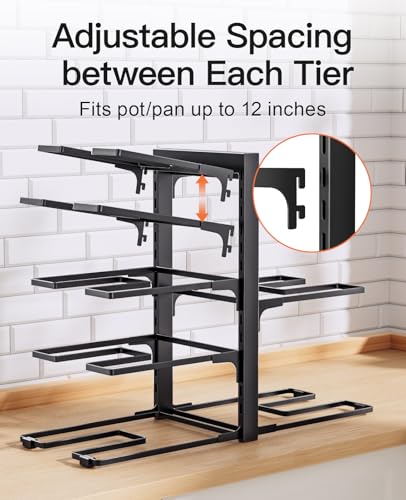 ORDORA Pots and Pans Organizer Rack for Cabinet, 15.83" Height 8-Tier Heavy Duty 120LBS Pot Pan Organizer under Cabinet Adjustable for Dutch Oven, Cast-iron Pan, Heavy Skillets Griddles, Shallow Pot, A-Black, M-15.83"H-HeavyDuty