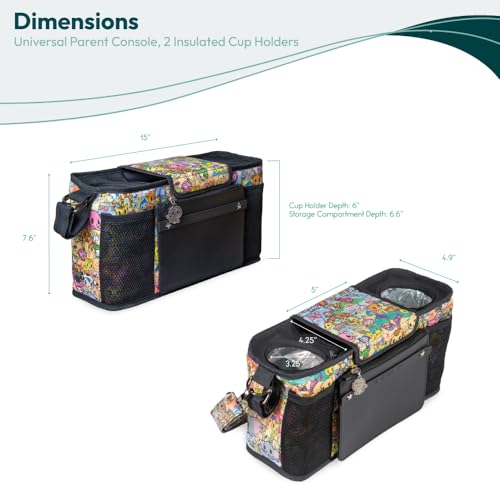 • WONDERFOLD Universal Parent Console Stroller Organizer with 2 Insulated Cup Holders, Hook & Loop Closure Handle Attachment, 2 Storage Pockets, Removable Shoulder Strap for Easy Transport, Animalini