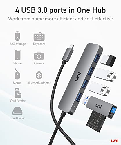 • uni USB C to USB Hub 4 Ports 2ft, Sturdy Braided USB Type C to USB Adapter with 4 USB 3.0 Ports, Thunderbolt 3 to Multiport USB 3.0 Hub Adapter for MacBook Pro/Air 2020/2019, iPad Pro
