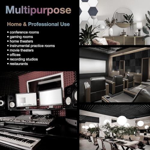 • Fstop Labs Acoustic Foam Panels 1" X 12" X 12" Self-adhesive Acoustic Studio Wedge Tiles, Sound Panels wedges Soundproof Foam Padding Sound Insulation Absorbing Home and Office