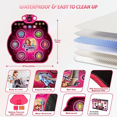 • Dance Mat Toys for 3-12 Year Old Kids,Electronic Dance Pad with Light-up 6-Button & Wireless Bluetooth, 5 Game Modes Princess Dancing Mat, Birthday Xmas Gifts for 3 4 5 6 7 8 9 10+ Year Old Girls