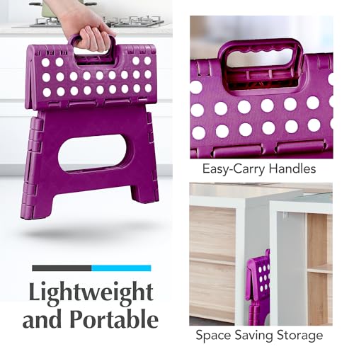• Handy Laundry Folding Lightweight Step Stool - Sturdy Enough to Support Adults and Safe Enough for Kids - Opens Easy with One Flip - Great for Kitchen, Bathroom or Bedroom (Purple | 2-Pack)