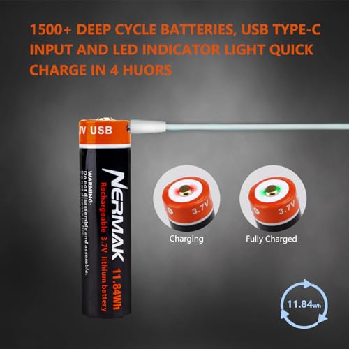 • NERMAK 3.7V 3200mAh USB Rechargeable Lithium lon Battery for Flashlights, Headlamps, Bike Lights, Bluetooth Speaker Etc(2 Pack)