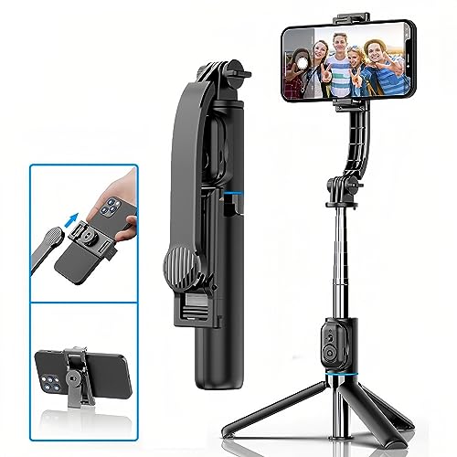 • Portable Selfie Stick Phone Tripod - Extendable Travel Selfie Stick Tripod Phone Holder with Wireless Remote for iPhone Galaxy Android for Video Recording/Photo/Live Stream/Vlog