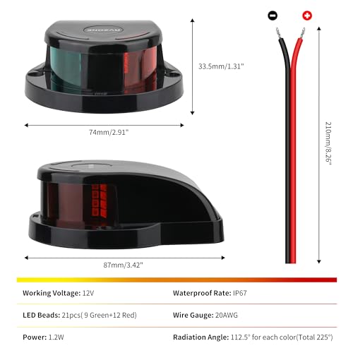 • RVZONE Boat Navigation Lights, Navigation Lighting for Boats Led IP67 Waterproof Red and Green Marine LED Bow Lights, Ideal for Pontoon, Yacht, Skiff (Black)