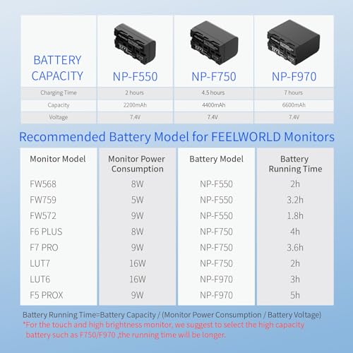 • FEELWORLD 1 Pack NP-F550 2200mAh Battery Replacement of NP-F970 F960 F950 F770 F750 F570 F550, USB-C Fast Charging Rechargeable for LED Video Light, Camera Monitor, Wireless Transmission
