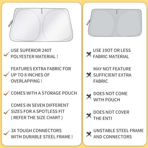 • Windshield Sun Shade - Car Sun Shade with Storage Pouch, Foldable Sun Shade for Car Window Reflect UV Sun and Heat Fits Small Sedans, Mini SUVs, ect.-Medium