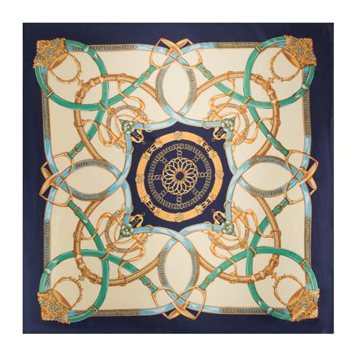 RIIQIICHY Head Scarf for Women Like Silk Scarf Hair Scarf Printed Square Scarf Bandanas for Women 35 Inches, Navy/Yellow/Gold/Green/Blue, Large