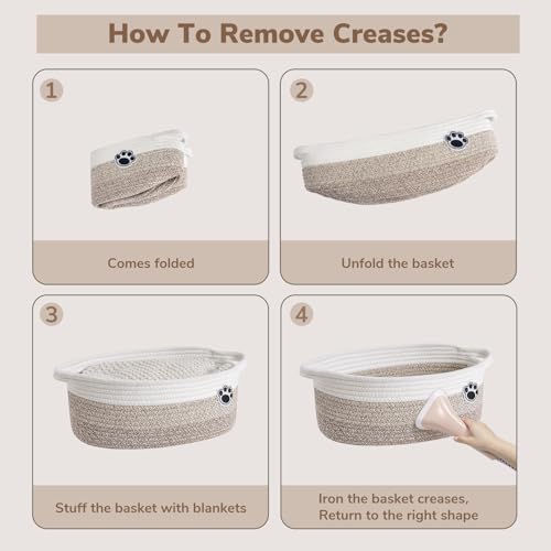 • HiChen Dog Toy Basket Small Gift Basket for Baby, Storage Basket for Nursery, Woven Basket for Dog Cat Storage, Nursery Storage Basket for Diapers, Towels, 12"x 8" x 5" Mixed-Brown