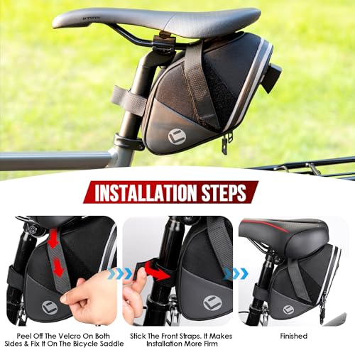 • WOTOW Bike Saddle Bag - Waterproof Strap-on Bike Seat Bag - Reflective Bicycle Under Seat Storage Pouch for Road Mountain Bike Cycling Travel