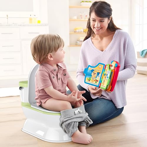 • CheerTry 2-in-1 Toddler Potty Training Toilet - Larger Potty Chair & Detachable Training Seat for Boys & Girls Ages 1-3 with Flushing Sound, Wipes Storage, Toilet Paper Holder - Green