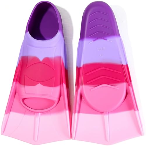 Foyinbet Kids Swim Fins,Kids Flippers Youth Swimmer Fins Swimming Training Fins for Lap Swimming for Child Girls Boys 3XS, Dark Purple / Red / Light Purple / Light Pink, 3XS ( US Kids 7.5-9 )