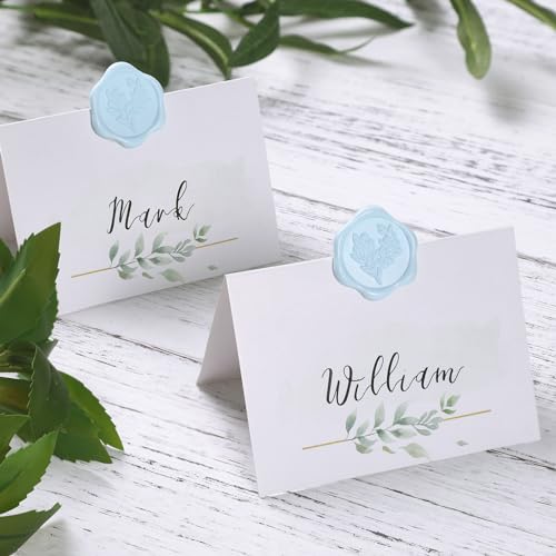 • UNIQOOO Wax Seal Stickers - Eucalyptus Wedding Invitation Envelope Seal Stickers, 50 Pcs Self- Adhesive Light Blue Stickers, Perfect for Invitation, Christmas, Gift Wrapping