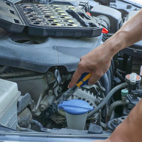 haisstronica 24 in 1 Interchangeable Heads Ratchet Wrench Set with 3/8 in Adapter, Metric & SAE 8-19mm and 1/4-3/4 inch Flex Head Combination Wrench Sets for Auto, Mechanic Tools for Men Gifts, Blue&yellow, Metric&SAE-24 in 1