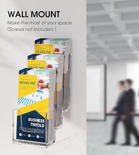• KTRIO 3 Tier Acrylic Brochure Holder 4x9 Inches 2 Pack, Clear Trifold Brochure Display Stand Plastic Pamphlet Holder for Flyer, Literature, Bookmark, Catalogs, Countertop or Wall Mount Use
