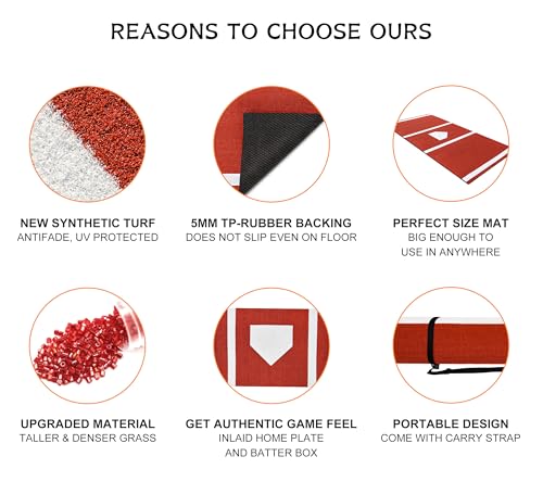 • KuiBonu 2024 Upgraded Version Baseball Hitting Mat with Antislip Rubber Backing, 12' x 6' Batting Cage Mat with Home Plate, Batters Box Turf Mat Baseball for Indoor and Outdoor