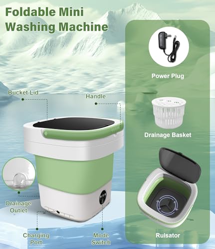 • 13L Portable Washing Machine, Mini Portable Washer with Spin Dryer, 3 Modes Deep Cleaning for Baby Clothes Socks Underwear or Small Items, small Washing Machine suitable for Apartment,RV Travel Green