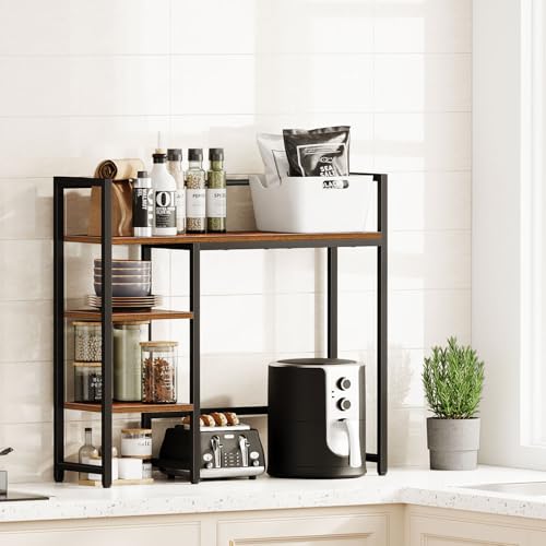 • Snughome Desk Shelf, 31.9" Desktop Organizer Shelf, Desk Hutch for Computer Monitor, 4 Tier Desktop Display Rack, Wood Desktop Bookshelf Storage Rack for Home Office Dorm, Rustic Brown