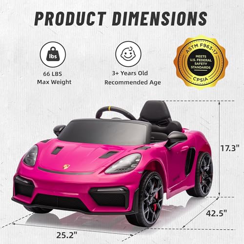 • First Ride On Licensed Porsche 718 12V Ride on Toy for Toddler, Ride on Car for Kids with Remote Control, Child Electric Car w/Horn, Radio, USB, Spring Suspension, Opening Door, Led Light (Pink)