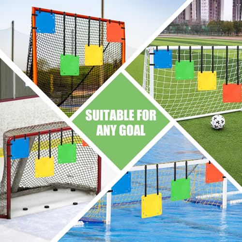 • TOBWOLF 4-Piece Soccer Goal Target Set with Adjustable Straps, Square Targets (12" Sides) in Red, Green, Blue, Yellow, TPE Material for Soccer, Lacrosse, Hockey, Baseball Training