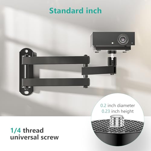 • WALI Foldable Projector Wall Mount Universal Adjustable Wall Projector Mount Aluminum Alloy Projectors Stand,1/4" M4 M6 Screw Size,(1330LM-PM), Black