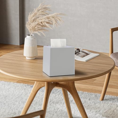 Y-in Hand Tissue Box Cover, Square Facial Tissue Holder Storage for Bathroom Vanity, Countertops, Dressers, Night Stand, Parlors and Offices - Grey