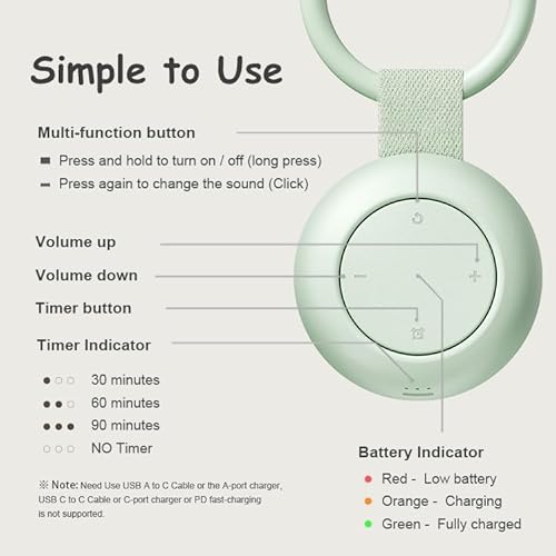 • TKGOU Portable Sound Machine for Baby Kids | Sleep Soother | 16 Soothing Sounds | Timer | Memory Function | 30H | White Noise | Shush | Travel | Registry Gift | Newborn Essentials | Clips on Stroller