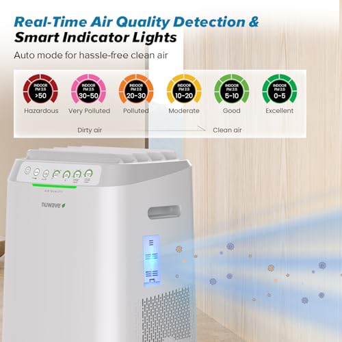 • Nuwave Forever Smart Air Purifier for Home, Never Replace Air Filter System, Patented 7-Stage Filtration, Cleans Large Room up to 2,002 Sq Ft, Adjustable Flow Panel, Washable & Reusable Filters