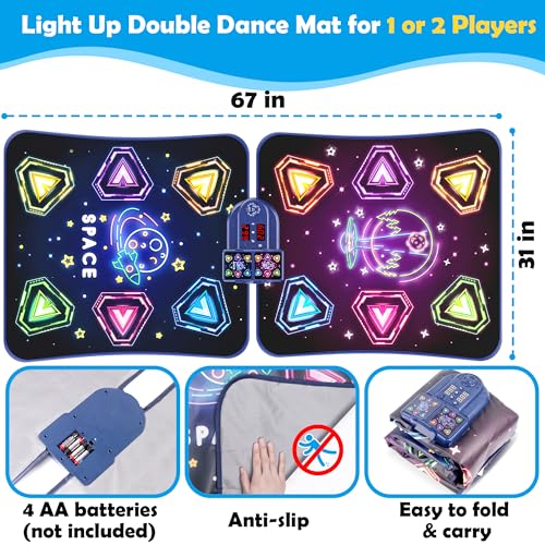 Pafolo Large Double Electronic Dance Mats, Dance Pad with LED Light & Wireless Bluetooth, Music Dance Toy with 6 Game Modes, Challenge Game for Single & Double Players, Dance Mat Toy for 3-12 Year Old Girls, Multicolor, 67 inches x 31 inches
