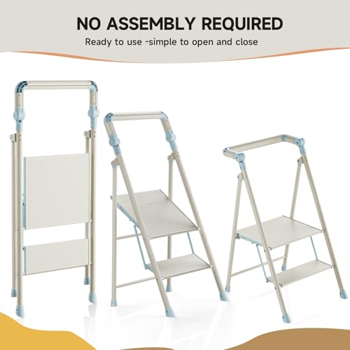 • UNICOO® Foldable Toddler Tower, 2-Step Kids Kitchen & Home Stool with Safety Rails, Compact Folding Step Stool for Toddlers & Adults, Multi-Use in Kitchen & Bathroom (Sea Salt Blue)