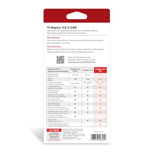 • Texas Instruments TI-Nspire CX II CAS Graphing Calculator | Color Screen, 8 Built-in Apps, Python Programming, Included Software, for Math, Science and Finance | Signature Series Power Bundle