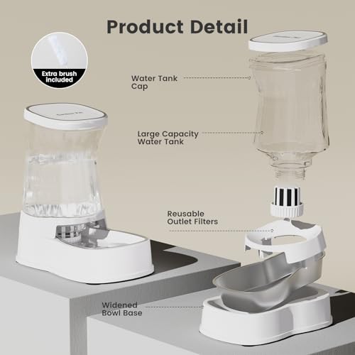 • Gardner Pet Automatic Gravity Water Dispenser for Dogs, 1.0Gallon 100% BPA-Free Dog Water Bowl Dispenser, Pet Water Fountain Dispenser with Sponge Filter for Small&Medium Dogs, Cats, Puppies(White)